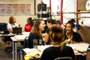 Our Job Training Program also integrates personal coaching into production management. For many moms, working at Bright Endeavors is their first job, so they’re learning the expectations of the workplace for the first time, according to Bright Endeavors’ Production and Training Specialist, Cathy Robinson-Yates.