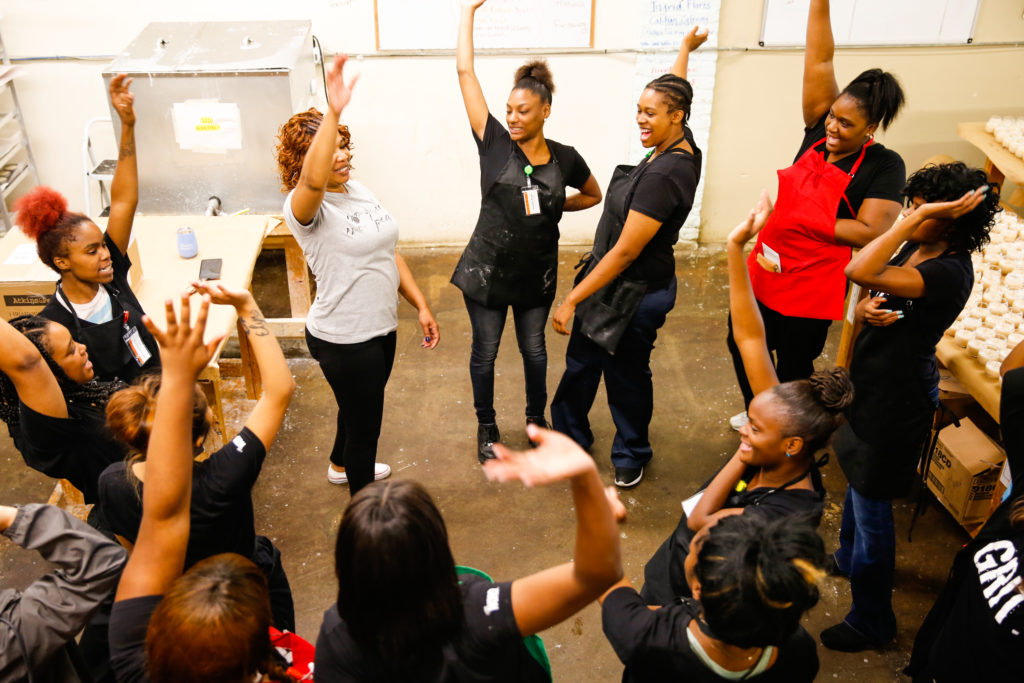 “It’s been great,” said Terrah, team lead of the finishing department. “Working on these candles, it’s bettered me as a person and as a young mom.”