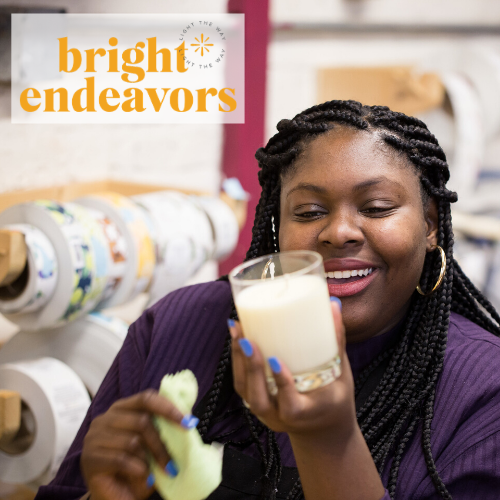 As a social enterprise, Bright Endeavors pairs New Moms’ social mission of supporting young moms as they build strong families with the business model of a candle-making company. We strive to challenge conventional models by prioritizing shared prosperity. Young moms gain critical, paid work experience and all revenue from the sale of the hand-crafted candles directly funds New Moms’ programming.